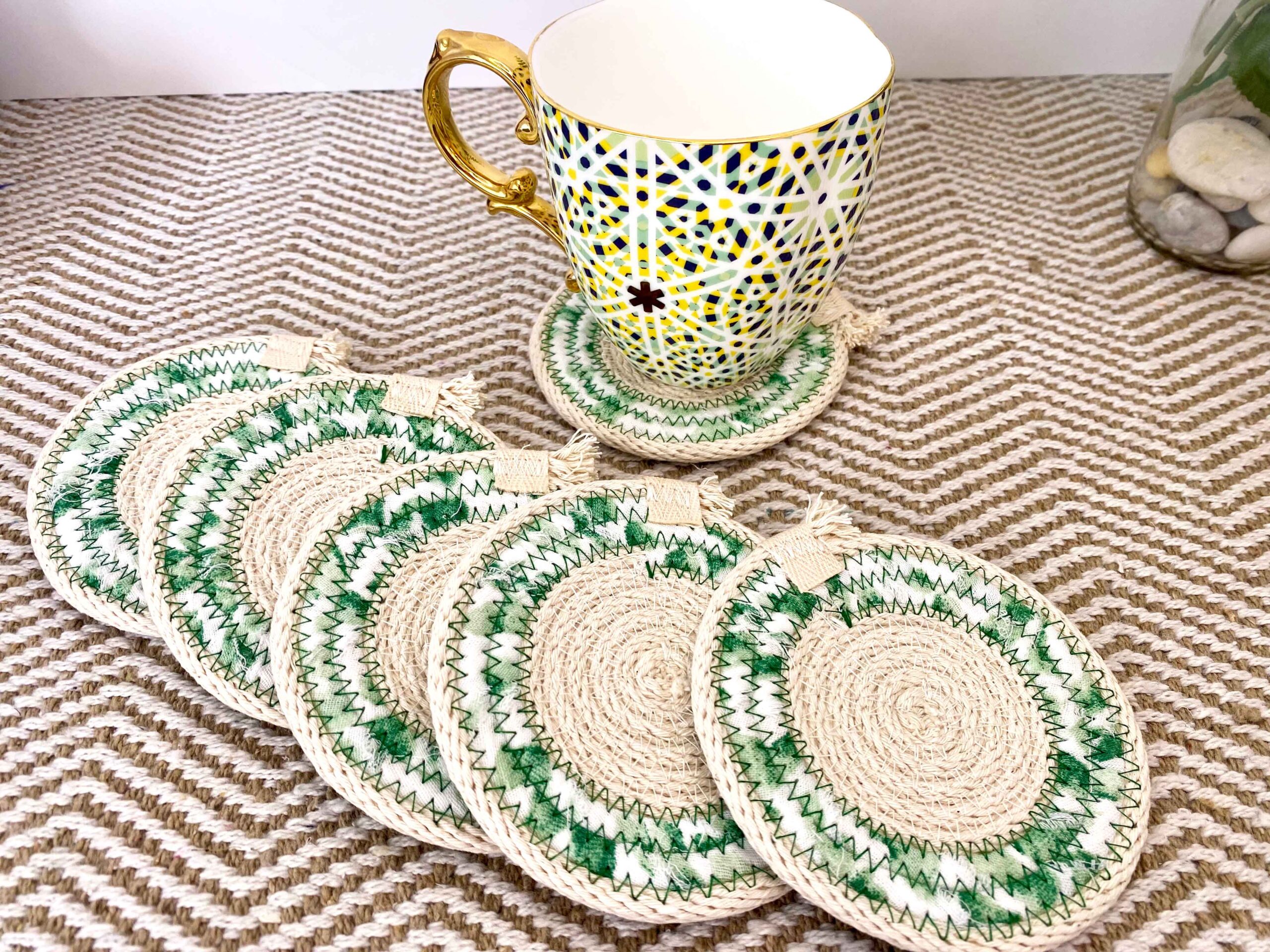 TANISHA Handmade Rope Coasters – Green & White